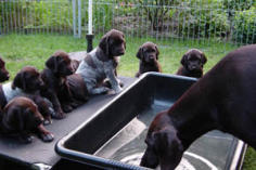 Nach 3 Wochen ziehen die Welpen nach draußen in den Zwinger mit