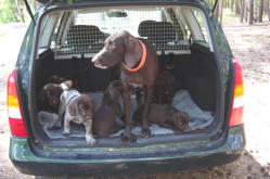 Ab 6 Wochen werden die Welpen ans Autofahren gewöhnt und es steht
