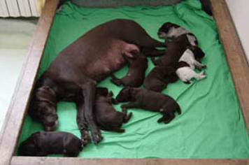 Die Geburt findet im Haus statt. Dazu wird die Hündin etwa 3 Wochen vor